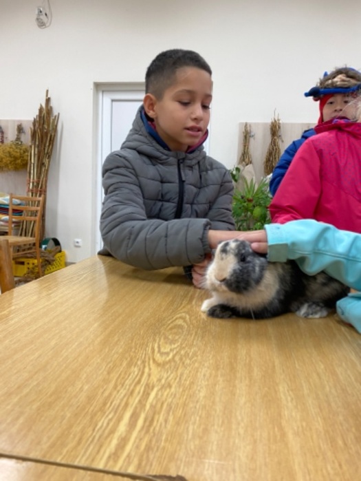 Aby nám čekání více utíkalo, prohlédli jsme si některá zvířátka chovaná na statku. Po návratu do kuchyně se děti nemohly dočkat, až ochutnají svůj výtvor. Chlebová houska, kterou si samy upekly, byla voňavá a chutná. Někdo neodolal a housku hned snědl, někdo ji nechal domů i pro rodiče.