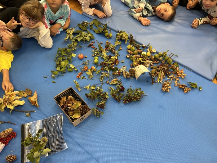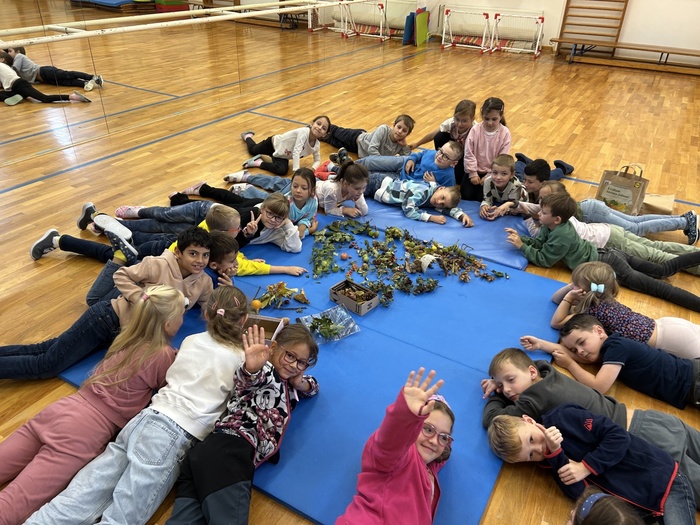 Na hodinu prvouky si žáci 2. A a 2. B přinesli různé podzimní plodiny, jako jsou jablka, dýně, ořechy, žaludy, kaštany, šišky, houby, kůru stromů a další dary, které nám podzimní příroda nabízí. Každé dítě mělo možnost představit svůj plod spolužákům a sdělit jeho název. Tímto způsobem si žáci nejen procvičili názvy jednotlivých plodů, ale také si všímali jejich rozmanitosti a krásy. Hodina byla plná zajímavých poznatků a společného objevování. Na závěr si děti mohly porovnat velikost, barvu a tvar různých plodů a zjistit, jak pestré a rozmanité jsou podzimní dary přírody.