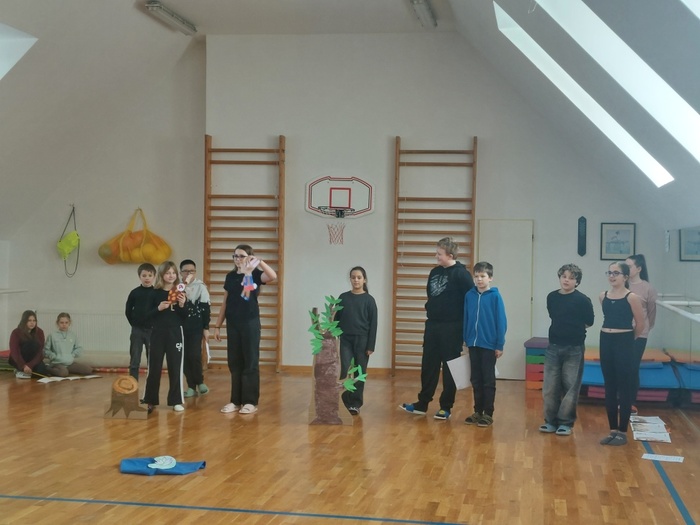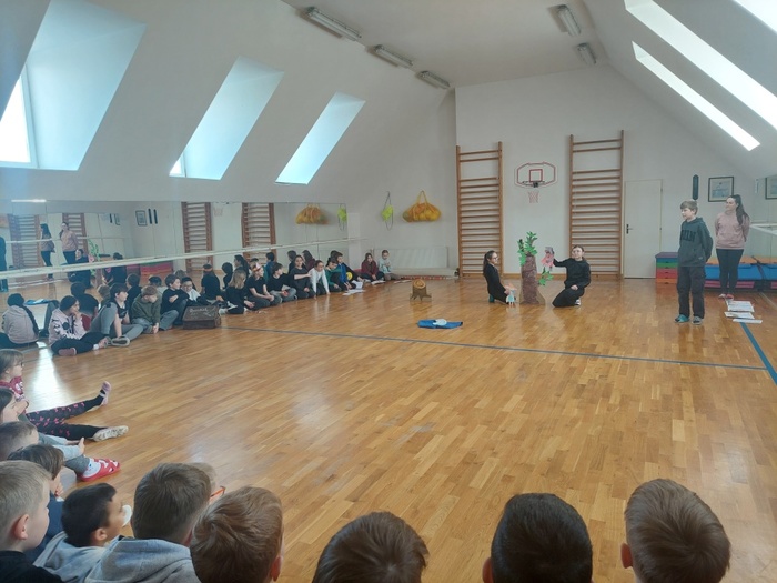 Žáci 2. A a 2. B zhlédli krásné pásmo bajek, které si pro ně připravili jejich starší spolužáci z 5. A. Představení bylo velmi povedené, plné zajímavých příběhů, poučení i hezkých hereckých výkonů. Páťáci si dali práci i s krásnými dekoracemi, které výstižně doplnily jejich divadelní pásmo. Na závěr dokázali sehrát i vtípek, který jejich malé spolužáky rozesmál. Dětem se celé vystoupení moc líbilo a odměnily účinkující velkým potleskem.